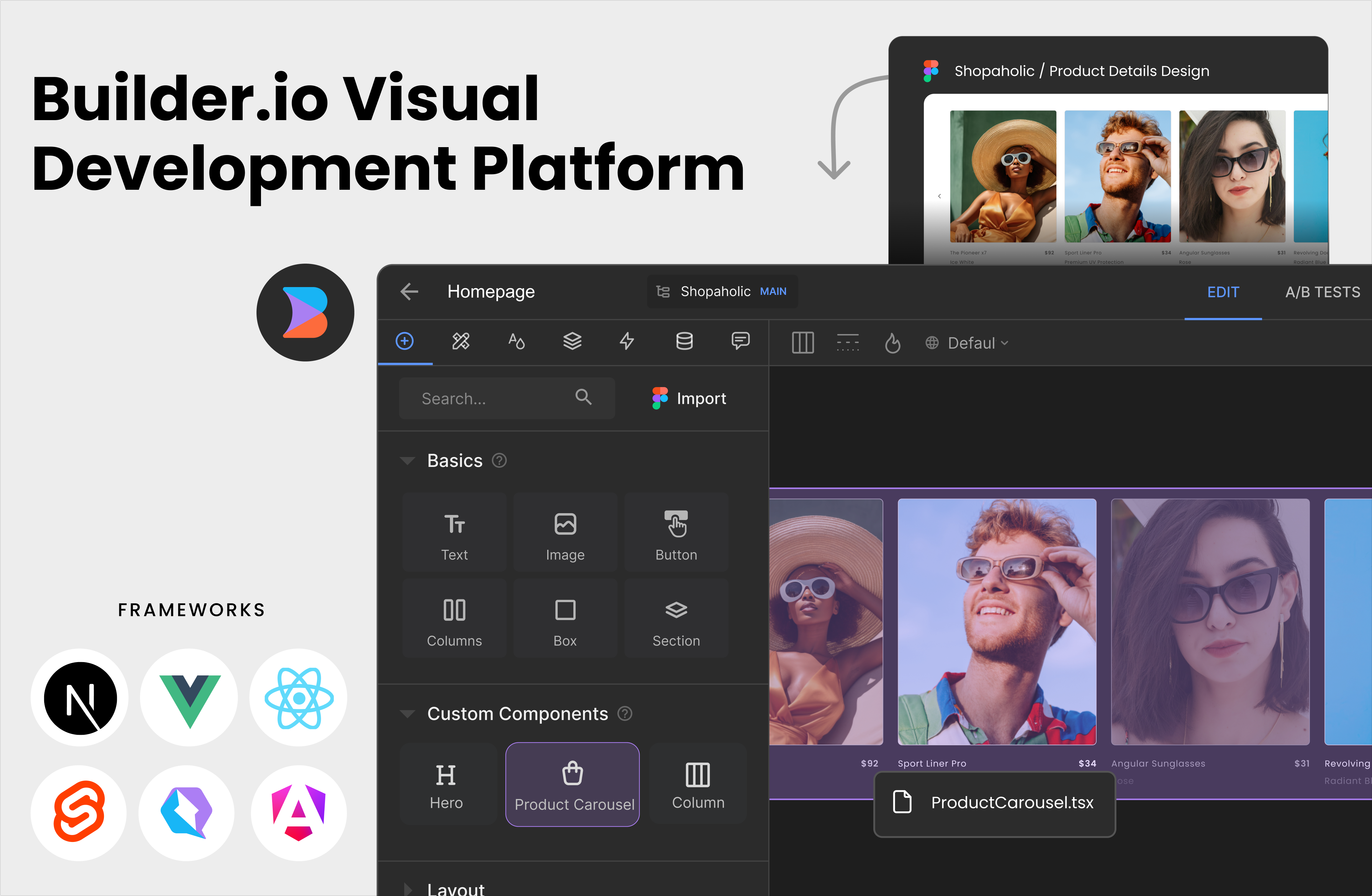 Builder is driving the next generation of front-end programming, with the only Visual Development Platform that offers an AI-powered design-to-code tool, a visual editor, and an enterprise CMS.