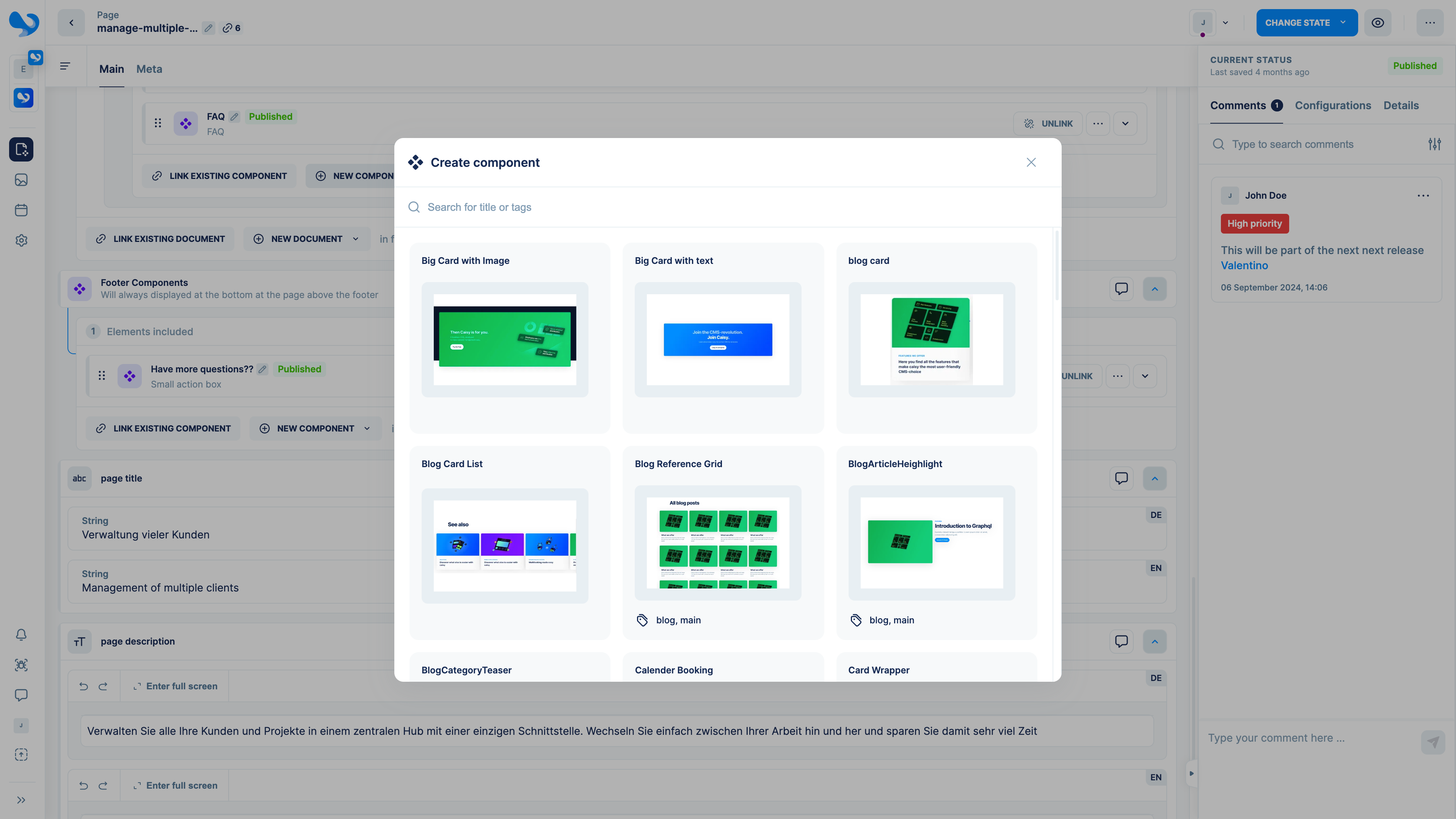 Content Modeling - Create reusable components and nested structures to make your content modeling more efficient and flexible. This approach allows for consistent content structures across your projects and speeds up the content creation process.