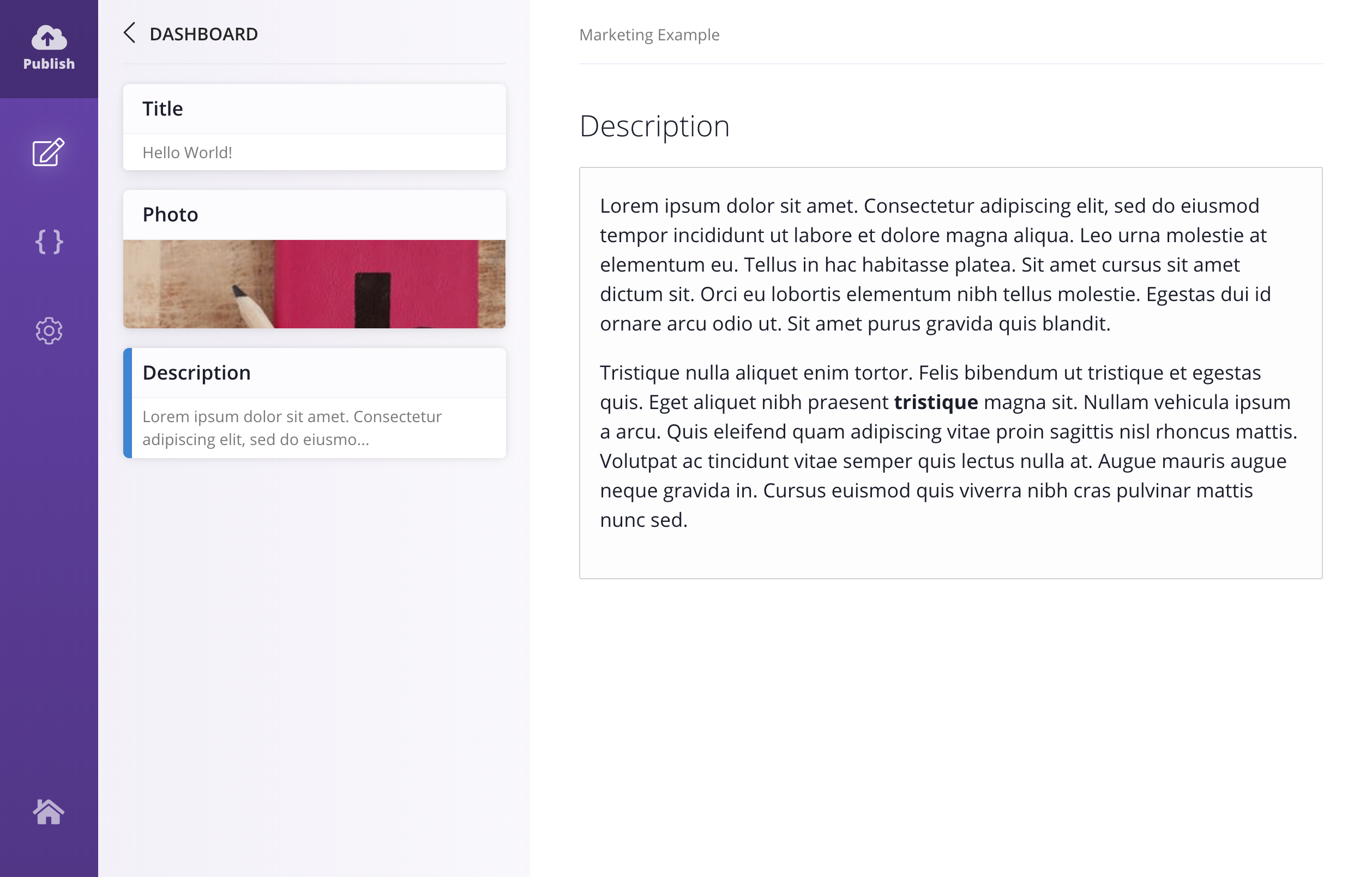 Editlayer is a headless CMS that operates in a cloud. The content is saved to a JSON file.