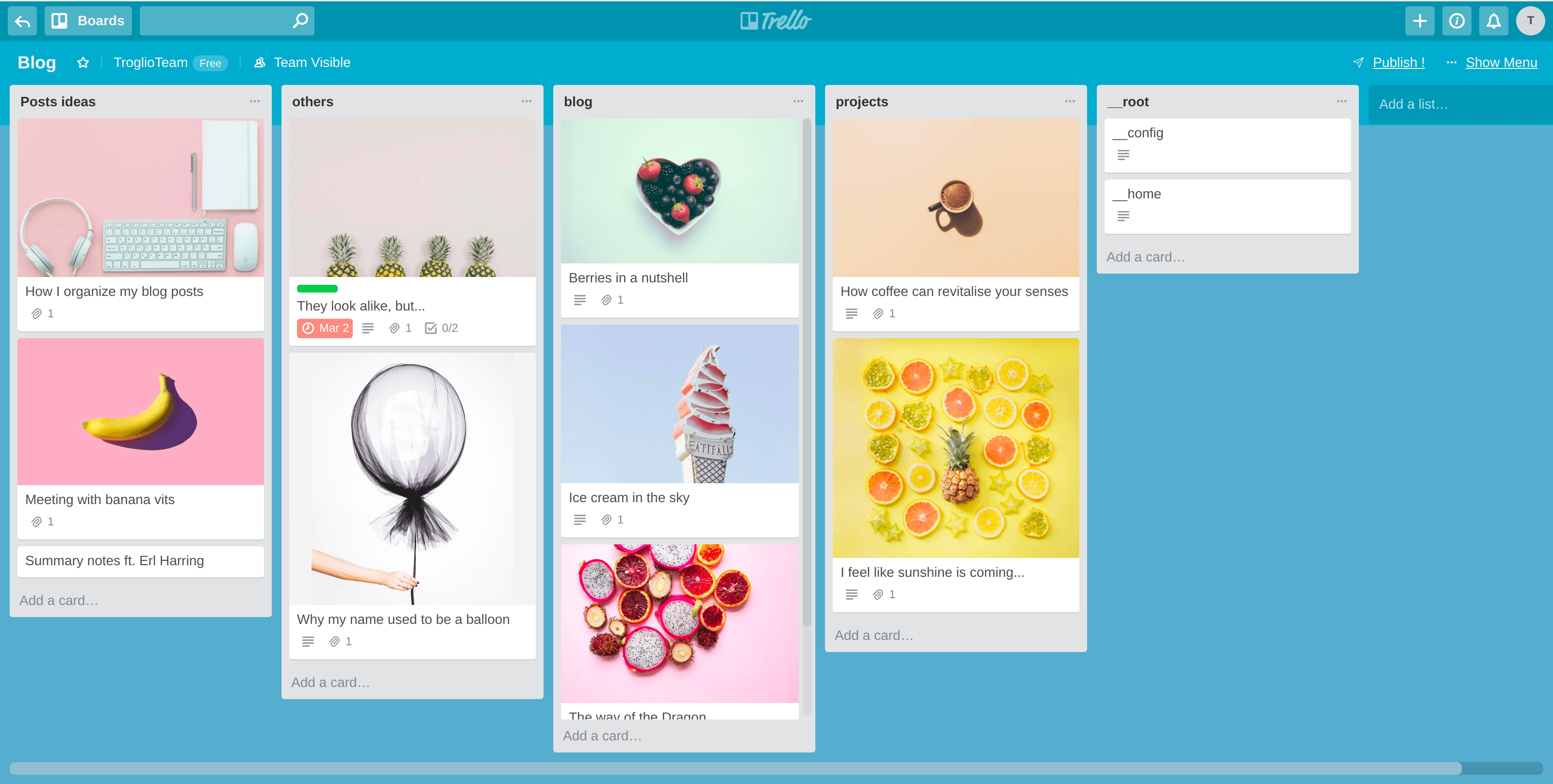 Troglio turns any Trello board into a headless CMS : connect any site or app to manage its content from Trello cards.